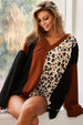 The brushed thermal color block top with leopard print combines a cozy brushed thermal fabric with a trendy color block design and stylish leopard print detailing. This top offers a unique and fashionable look, perfect for adding a touch of flair to your outfit. The combination of the thermal knit texture, color block pattern, and leopard print creates a statement piece that is both comfortable and chic.