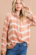 The Tie Dye Stripe Terry Drawstring Hoodie With Leopard is a fashionable and unique piece that combines trendy tie-dye and leopard print elements. Made from cozy terry fabric, this hoodie is both comfortable and stylish. Perfect for adding a pop of fun and personality to your casual look.