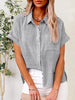 Product measurements: S:Top Length 25.59 in, Bust 39.37 in, Sleeve Length 10.24 in M:Top Length 25.98 in, Bust 40.94 in, Sleeve Length 10.63 in L:Top Length 26.38 in, Bust 43.31 in, Sleeve Length 11.02 in