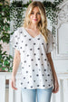 The Star Print Short Sleeve V-Neck Waffle Knit T-Shirt is a stylish and comfortable choice for those who love a touch of whimsy in their wardrobe. The shirt features a playful star print that adds a trendy and fresh look. The v-neckline offers a flattering and feminine touch, while the short sleeves keep it cool and casual. The waffle knit fabric adds texture and dimension to the shirt, making it a unique and standout piece. Whether you're running errands or meeting up with friends, this t-shirt can be easily styled with jeans or shorts for a relaxed yet fashionable outfit. Embrace your inner star and shine bright with this delightful t-shirt.