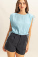 A bubble hem side tie detail round neck sleeveless blouse is a stylish and unique top that features a round neckline and sleeveless design. The bubble hem creates a gathered, voluminous effect at the waist, adding a playful and feminine touch to the blouse. The side tie detail allows you to adjust the fit and adds a fashionable element to the garment. This blouse is versatile and can be dressed up or down, making it a great choice for various occasions.