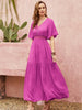 Lace Detail V-Neck Short Sleeve Midi Dress