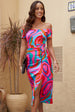 M: bust 34 in, waist 27 in, hip 36 in, sleeve length 6 in, length 42 in