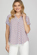 She + Sky Full Size Printed Johnny Collar Short Sleeve Blouse Plus Size