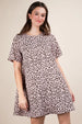 A leopard-printed comfy mini dress is a trendy and comfortable piece with a stylish animal print pattern. This dress combines a fashionable leopard print with a relaxed and easy-to-wear mini-length silhouette. Perfect for both casual outings and adding a touch of flair to your wardrobe, this dress is a versatile and on-trend choice for any fashionista.