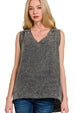 Zenana Double Gauze Raw Edge Acid Washed Tank